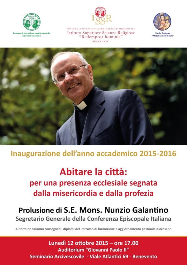 Il 12 ottobre ore 17.00 Lectio in Seminario di S.E. Mons. Nunzio Galantino, Segretario Generale CEI e inaugurazione a.a. 2015-2016. In questa occasione, con tutti i catechisti, vivremo la giornata diocesana per iniziare il nostro anno pastorale.