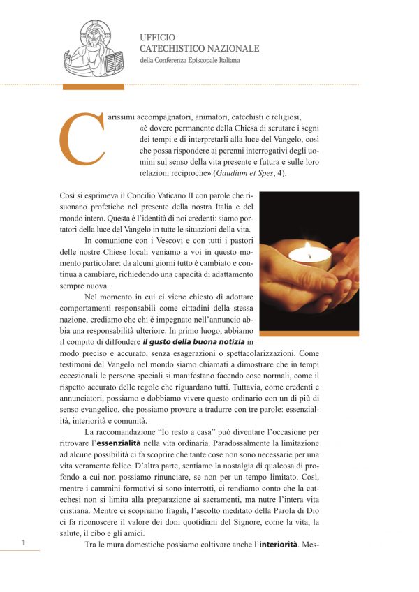 Alleghiamo la lettera scritta dalla Consulta nazionale dell’Ufficio Catechistico Nazionale per accompagnare in catechisti in questo tempo di difficoltà. Catechesi